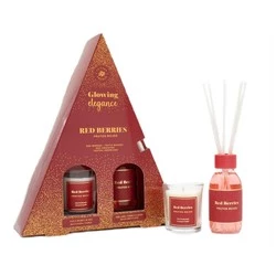 Glowing Elegance zestaw patyczki zapachowe Czerwone Owoce 95ml + świeca zapachowa Czerwone Owoce 120g