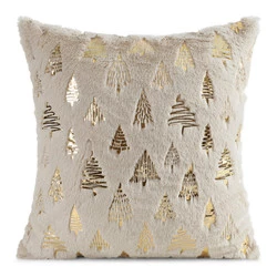 Poszewka świąteczna 45x45 cm – futerkowa z choinkami, beżowa