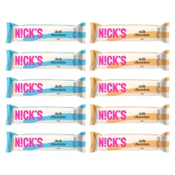 Zestaw mix smaków batonów N!CK'S: 5szt. Milk Chocolate bez cukru 25g, 5szt. Dark Chocolate bez cukru 25g