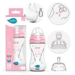 Nuvita, Butelka szklana antykolkowa, różowa, 240 ml