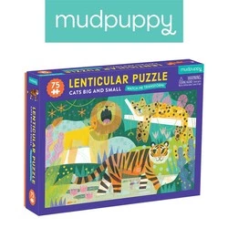 Mudpuppy Puzzle soczewkowe z ruchomym obrazkiem 3D Duże i małe koty 75 elementów 5+