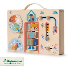 Lilliputiens Drewniana tablica manipulacyjna walizka "Ubranie na każdą pogodę" Lisiczka Alice 2 lata +
