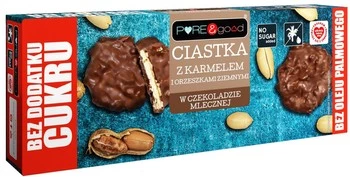 Ciastka z karmelem i z orzechami ziemnymi w czekoladzie mlecznej bez dodatku cukru 128g