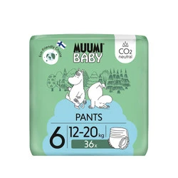 Muumi Baby, Jednorazowe pieluchomajtki ekologiczne dla dzieci, rozmiar 6 (12-20kg), 36 szt.