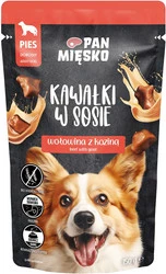 Zestaw 10x Pan Mięsko Kawałki w sosie Wołowina z koziną - mokra karma dla psa - 150g