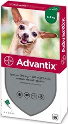 BAYER ADVANTIX Krople dla psa na kleszcze pchły S do 4kg 4szt.
