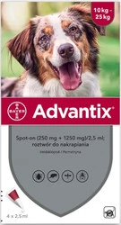 BAYER ADVANTIX Krople dla psa na kleszcze pchły L 10-25kg 4szt.
