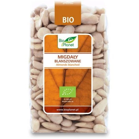 - BIO PLANET Migdały blanszowane BIO 350g SKŁADNIKI: migdały blanszowane* 100% (*certyfikowany składnik ekologiczny) OPIS: Ekologiczne migdały to doskonały produkt do spożywania pod każdą postacią.