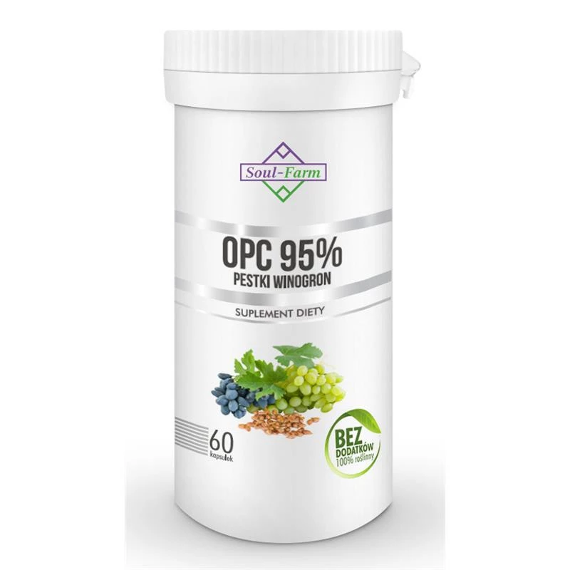 - Suol Farm Premium OPC 95% to silny ekstrakt z pestek winogron w roślinnych kapsułkach, standaryzowany na 95% proantycyjanidyn (OPC). Wysokie stężenie składników aktywnych zapewnia maksymalne wsparcie organizmu w ochronie komórek