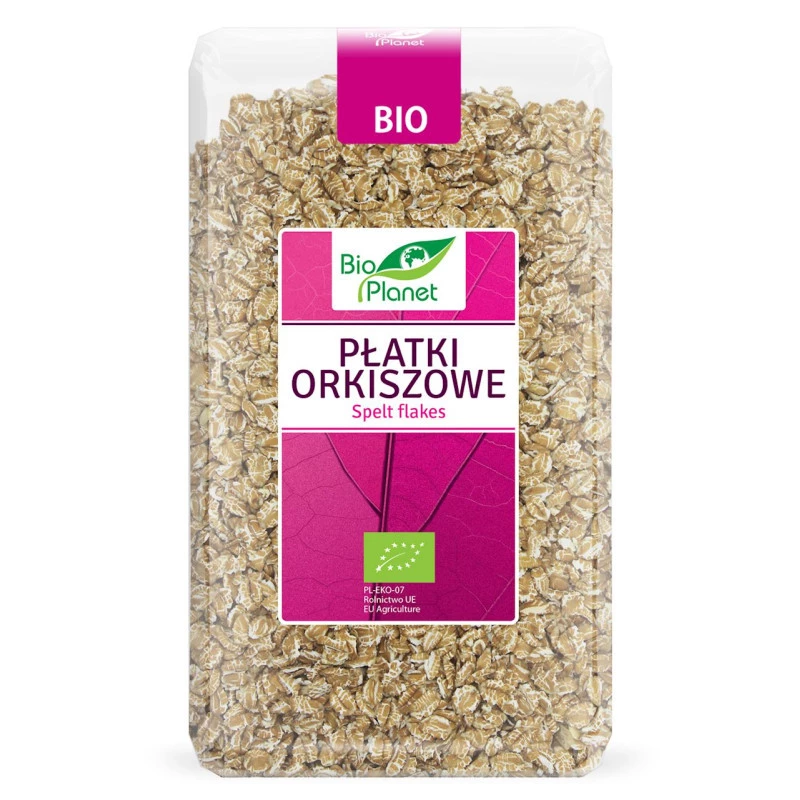 - BIO PLANET Płatki orkiszowe BIO 600g. Ekologiczne płatki orkiszowe uzyskuje się z gniecionych ziaren pszenicy orkisz. Płatki orkiszowe to doskonała propozycja na codzienne śniadanie. Najlepiej smakują z dodatkiem jogurtu, napoju zbożowego oraz z owocami.