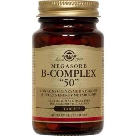 Produkt Solgar Megasorb B-Complex “50” - 100 tabl. Solgar to suplement diety. Nie może być stosowany jako substytut zróżnicowanej diety. Pamiętaj o zrównoważonym sposobie żywienia i zdrowym trybie życia.- Przechowuj w chłodnym miejscu, z dala od bezpośredniego światła słonecznego.