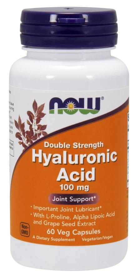 Suplement diety Now Foods Kwas Hialuronowy zawiera aż 100 mg najczystszego i naturalnego kwasu hialuronowego. Preparat dodatkowo został wzbogacony o prolinę, kwas alfa liponowy oraz standaryzowany ekstrakt z winogron.