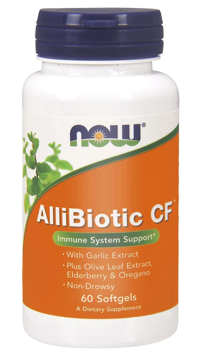 - NOW Foods AlliBiotic CF 60 kapsułek to mieszanka ziół i ekstraktów roślinnych. Suplement zawiera czarny bez, ekstrakt z liści oliwnych, ekstrakt z czosnku, olej z oregano i olejek z rozmarynu - wszystkie znane ze swoich właściwości.