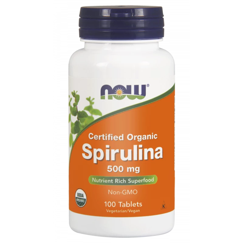 Suplement diety Now Foods Spirulina 500 mg to produkt zawierający słodkowodne algi morskie pochodzące z certyfikowanych i ekologicznych upraw w Ameryce Środkowej i Południowej.