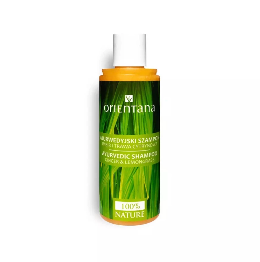 Szampon do włosów Imbir i trawa cytrynowa, Orientana został stworzony na bazie formuły ajurwedyjskiej. Zawiera wyłącznie wysokiej jakości naturalne składniki. Szampon do włosów Imbir i trawa cytrynowa (210 ml) jest bogaty w ekstrakty z orzechów reetha, które łagodnie i skutecznie myją włosy i skórę głowy – bez wysuszania. Ponadto pobudzają ich porost i wzmacniają cebulki. Amla zapobiega wypadaniu i rozdwajaniu się końcówek włosów, pielęgnuje skórę głowy i działa przeciwłupieżowo.