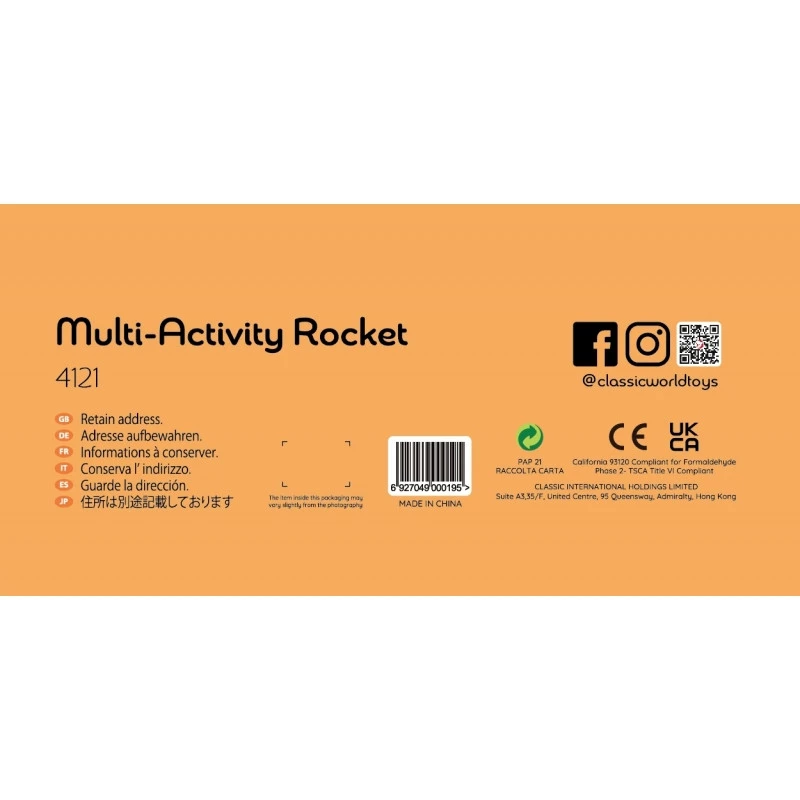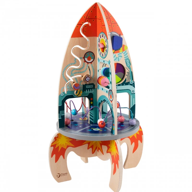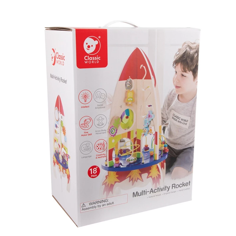 Wspaniała, kolorowa, duża rakieta od Classic World to idealna zabawka dla każdego ciekawego świata malucha. Zabawa i nauka w jednym to zaleta tej zabawki. Każda strona to inny rodzaj aktywności dla zapewnienia długiego zainteresowania zabawką oraz rozwoju. Produkt wykonany z myślą o małych rączkach dziecka. Brak ostrych krawędzi sprawi, że jest w pełni bezpieczny dla dziecka. Żaden maluch nie przejdzie obojętnie obok takiej rakiety. Zabawa wyobraźnią przekroczy granice razem z rakietą. Frajda z zabawy gwarantowana!