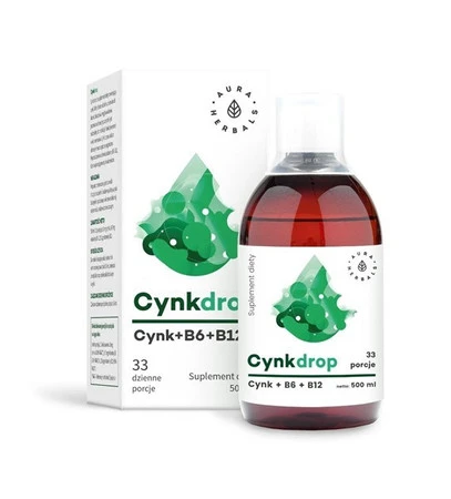 - Cynkdrop - Cynk + witamina B6 + witamina B12. Suplement diety zawierający cynk, który bierze udział w przemianach białek, tłuszczów i węglowodanów, przemianach energetycznych i jest niezbędny do produkcji i funkcjonowania wielu hormonów.