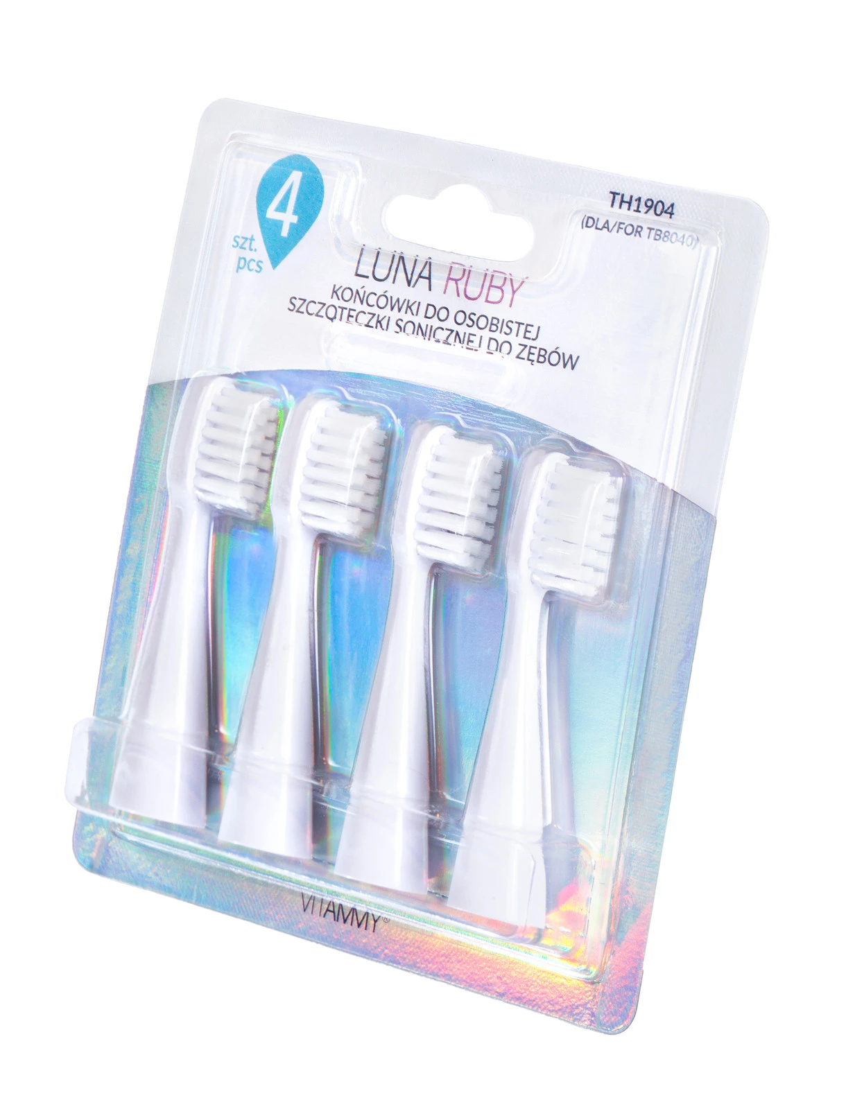 - Końcówki do szczoteczki sonicznej Vitammy Luna / RUBY. Niezwykle cienkie włókna, zaokrąglone na końcach, skutecznie docierają do zagłębień na powierzchni zęba zapewniając delikatne doznania i efektywne czyszczenie.