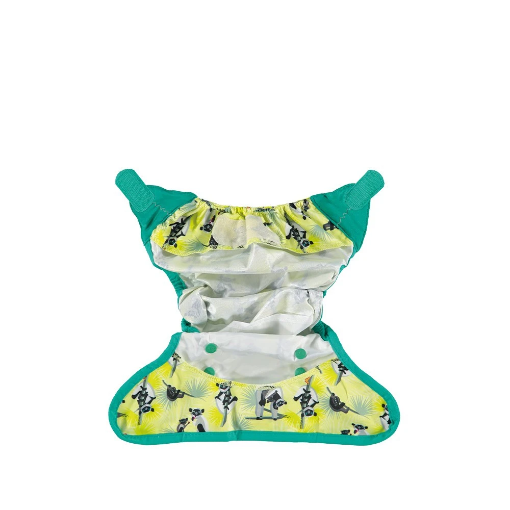 Podobnie jak nasze pieluchy, nasze otulacze są idealne na dzień i na noc, dzięki słynnemu, nieprzeciekającemu podwójnemu klinowi przy nogawkach. Są wystarczająco obszerne, aby zmieściły się nawet na najbardziej masywnym dwuczęściowy system pieluszek. Zapięcie na haczyk i pętelkę oraz elastyczne wypustki ułatwiają zapewnienie wygodnego, miękkiego dopasowania za każdym razem.