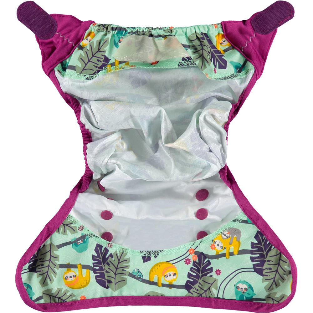 Podobnie jak nasze pieluchy, nasze otulacze są idealne na dzień i na noc, dzięki słynnemu, nieprzeciekającemu podwójnemu klinowi przy nogawkach. Są wystarczająco obszerne, aby zmieściły się nawet na najbardziej masywnym dwuczęściowy system pieluszek. Zapięcie na haczyk i pętelkę oraz elastyczne wypustki ułatwiają zapewnienie wygodnego, miękkiego dopasowania za każdym razem.