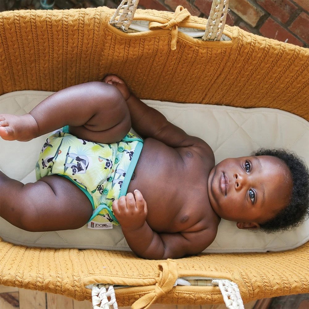 Podobnie jak nasze pieluchy, nasze otulacze są idealne na dzień i na noc, dzięki słynnemu, nieprzeciekającemu podwójnemu klinowi przy nogawkach. Są wystarczająco obszerne, aby zmieściły się nawet na najbardziej masywnym dwuczęściowy system pieluszek. Zapięcie na haczyk i pętelkę oraz elastyczne wypustki ułatwiają zapewnienie wygodnego, miękkiego dopasowania za każdym razem.