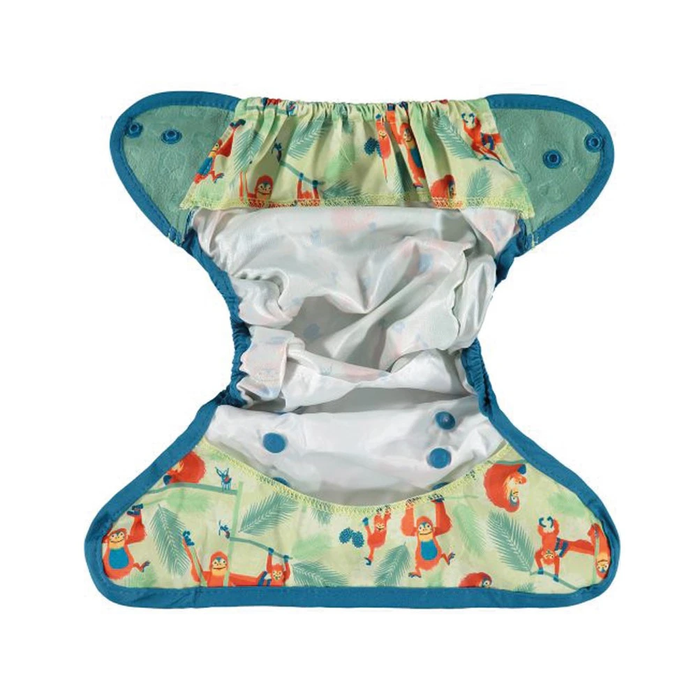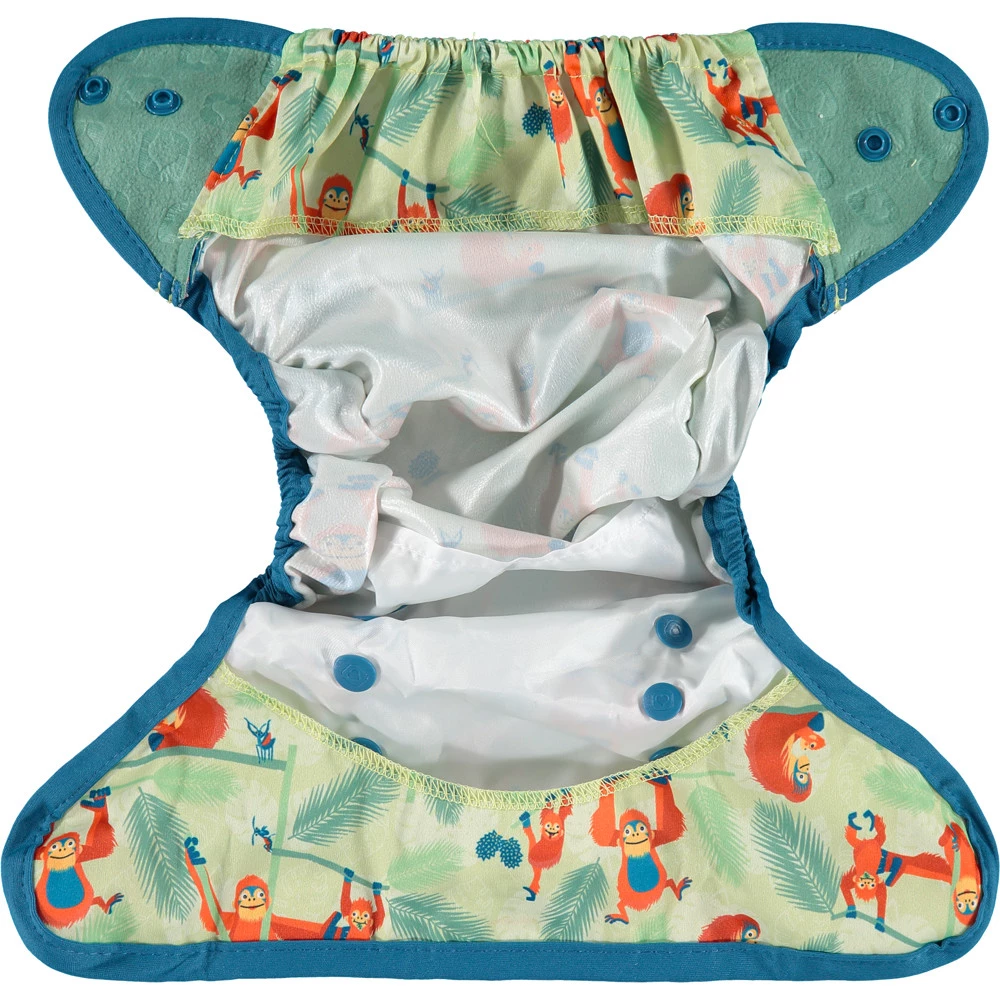 Podobnie jak nasze pieluchy, nasze otulacze są idealne na dzień i na noc, dzięki słynnemu, nieprzeciekającemu podwójnemu klinowi przy nogawkach. Są wystarczająco obszerne, aby zmieściły się nawet na najbardziej masywnym dwuczęściowy system pieluszek. Zapięcie na haczyk i pętelkę oraz elastyczne wypustki ułatwiają zapewnienie wygodnego, miękkiego dopasowania za każdym razem.