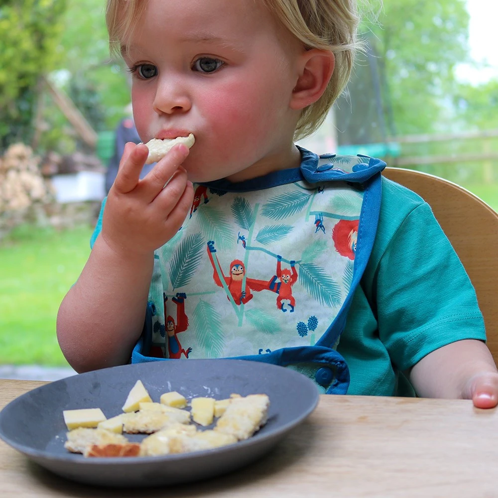 - Dwustronny śliniak z kieszonką przeznaczony jest dla dzieci, które podejmują próby samodzielnego jedzenia. (6 miesięcy +).