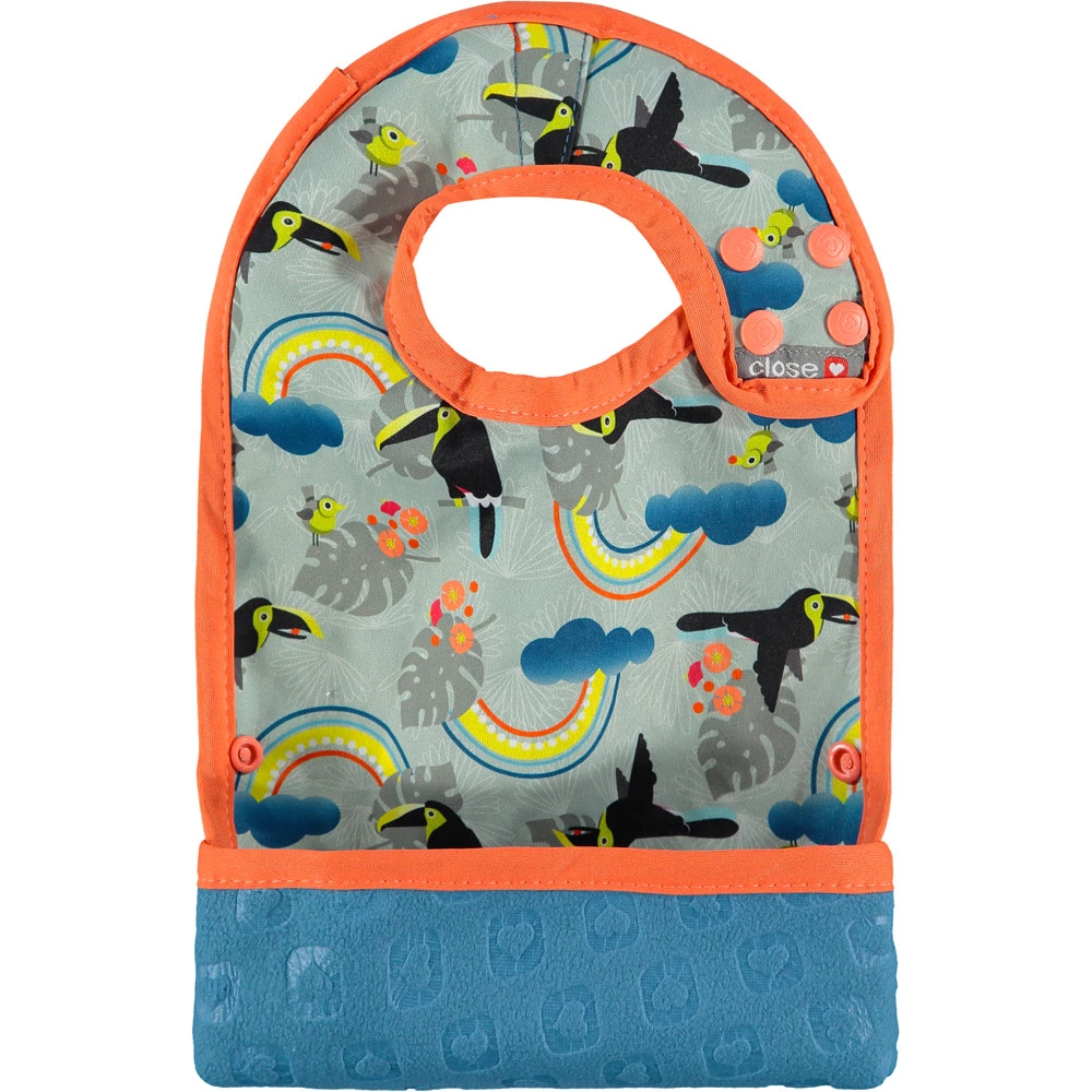 Dwustronny śliniak z kieszonką przeznaczony jest dla dzieci, które podejmują próby samodzielnego jedzenia. (6 miesięcy +).