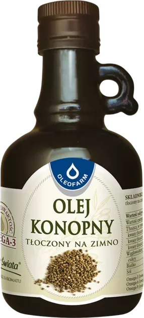 tłoczony na zimno z nasion konopi siewnych posiada charakterystyczne dla tego