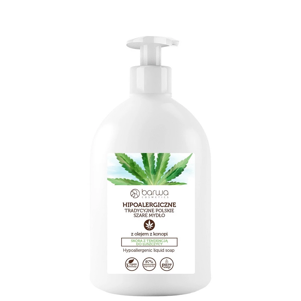 - Barwa Mydło hipoalergiczne z olejem z konopi 500 ml Hipoalergiczne tradycyjne polskie szare mydło z olejem z konopi. Dzięki zawartości mydła potasowego skutecznie oczyszcza, nie naruszając naturalnej bariery ochronnej skóry.