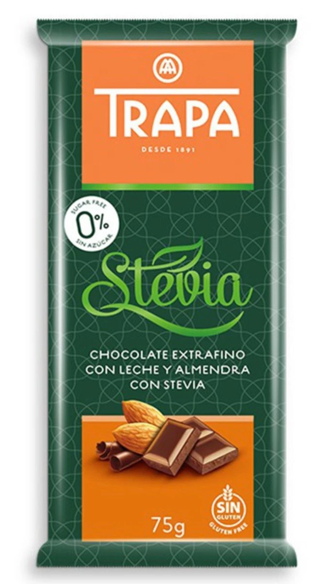 Trapa − Czekolada mleczna z migdałami ze stewią − 75 g