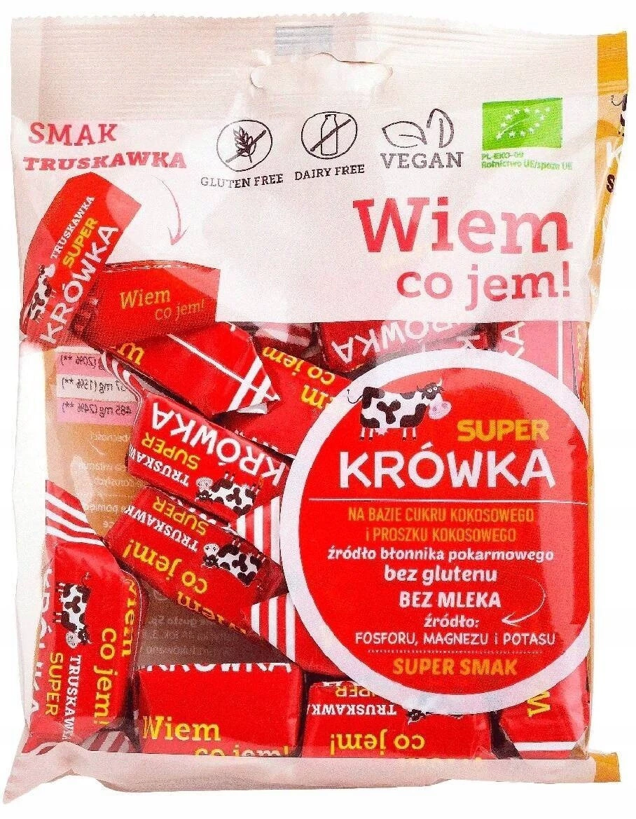 Super Krówka − Krówki bezmleczne truskawkowe bezgl. BIO − 150 g