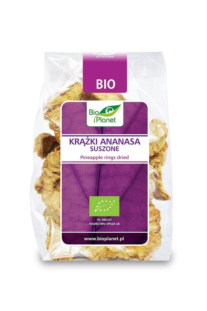 - Ekologiczne suszone krążki ananasa to doskonała samodzielna przekąska. Polecamy również jako dodatek do słodkich sałatek, sosów bakaliowych, deserów i kotajli.