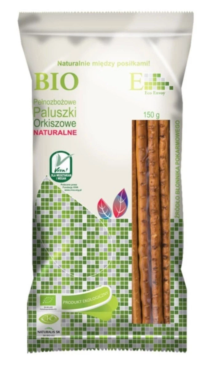 Envoy Paluszki Orkiszowe Pełnoziarniste Naturalne BIO 150 g to doskonały wybór dla miłośników prostych, naturalnych smaków. Wykonane z pełnoziarnistej mąki orkiszowej, paluszki te oferują delikatnie orzechowy posmak i chrupiącą teksturę, dzięki czemu świetnie sprawdzą się jako przekąska na co dzień.