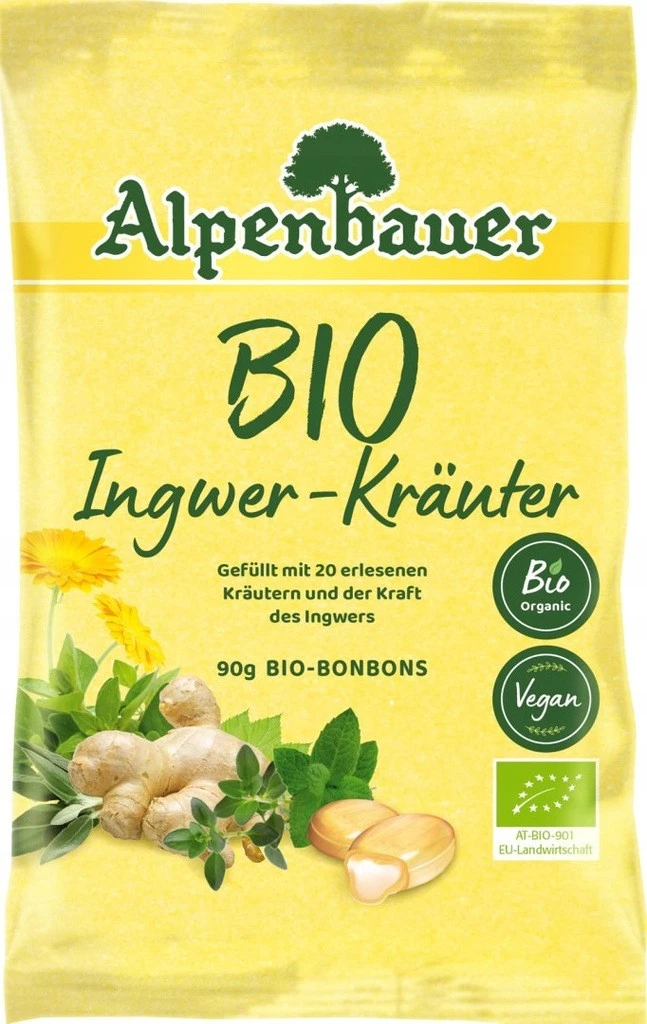 ALPENBAUER CUKIERKI Z NADZIENIEM O SMAKU IMBIROWO - ZIOŁOWYM BIO 90 g