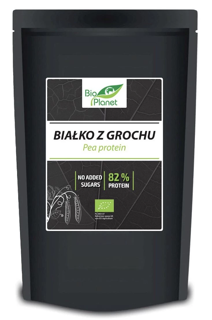 • Białko z ekologicznego grochu to jedno z najlepszych źródeł białka pochodzenia roślinnego. Pozostawia na długo uczucie sytości, idealnie sprawdzi się dla osób będących na diecie wysokobiałkowej, wegańskiej, a także dla sportowców.