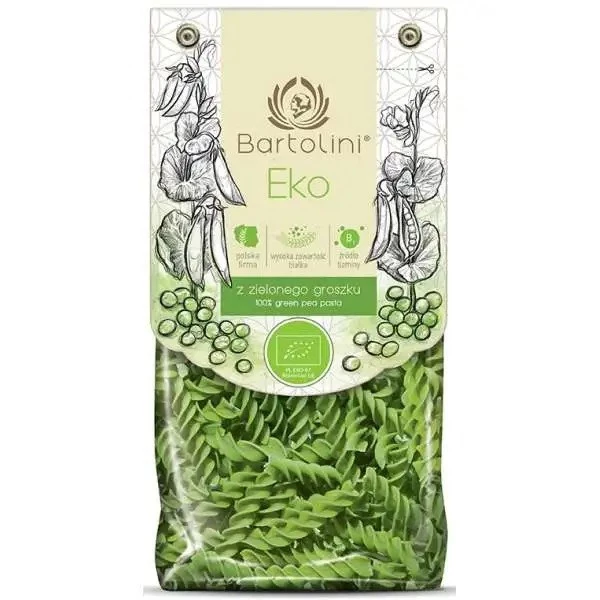 Bartolini Makaron Proteinowy Z Zielonego Groszku Świderki BIO 250 g to wyjątkowy produkt, który łączy w sobie wartości odżywcze i naturalne składniki, idealne dla osób poszukujących alternatywy dla tradycyjnego makaronu. Powstaje z ekologicznie uprawianego zielonego groszku, co zapewnia jego naturalną jakość oraz wyjątkowy smak. Makaron ten ma charakterystyczny zielony kolor i delikatny groszkowy aromat, który doskonale komponuje się z różnymi sosami i dodatkami.