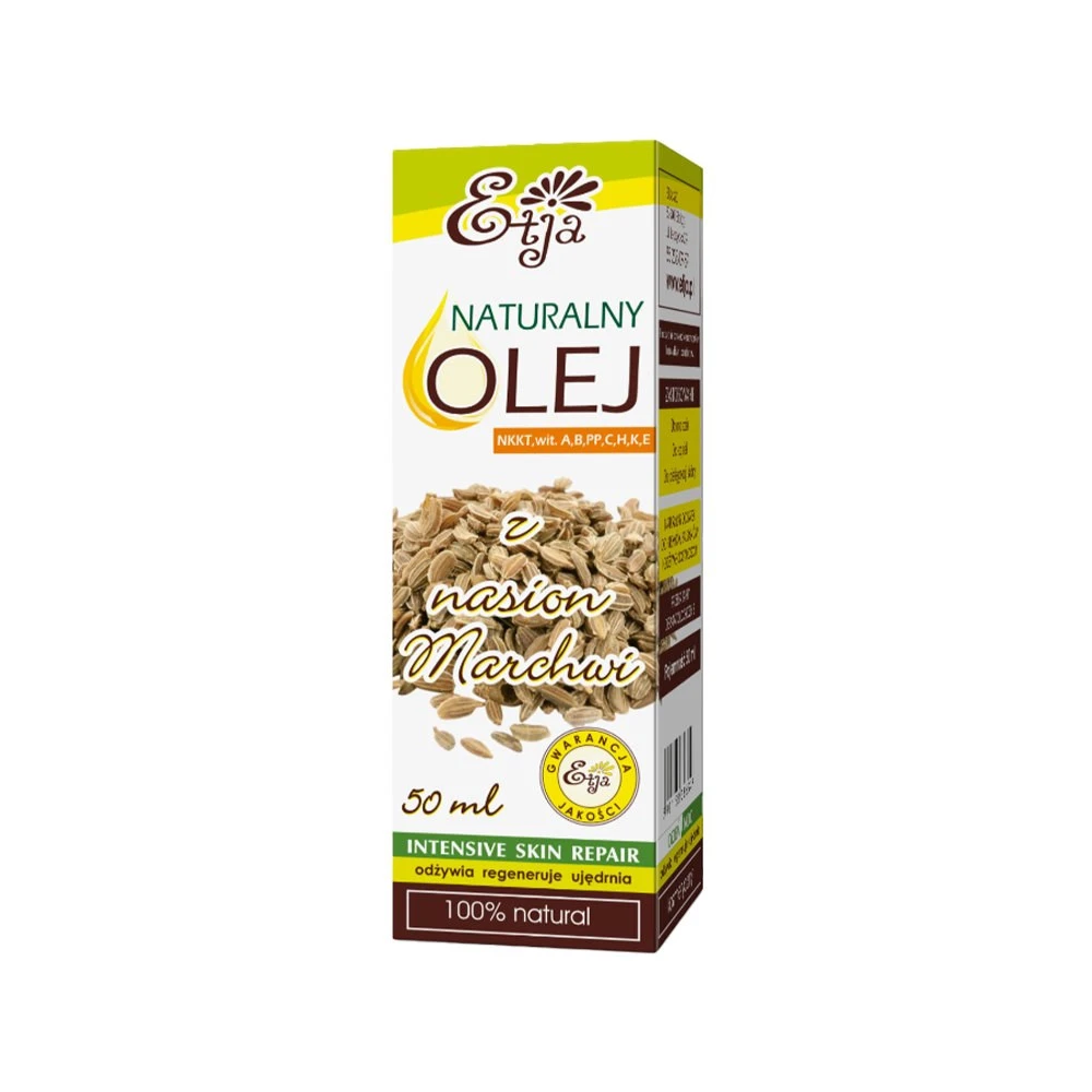 - Kosmetyczny, 100% naturalny, nierafinowany, tłoczona na zimno olej z nasion marchwi zwyczajnej. Zawiera NKKT oraz witaminy: A,B, PP, C, H, K oraz E.