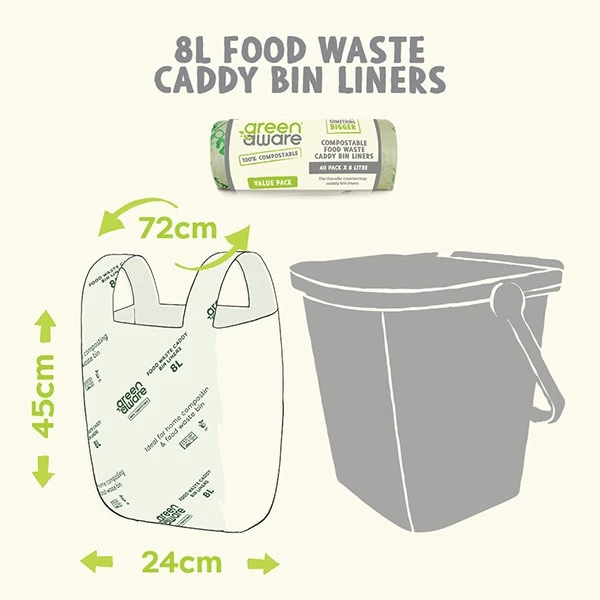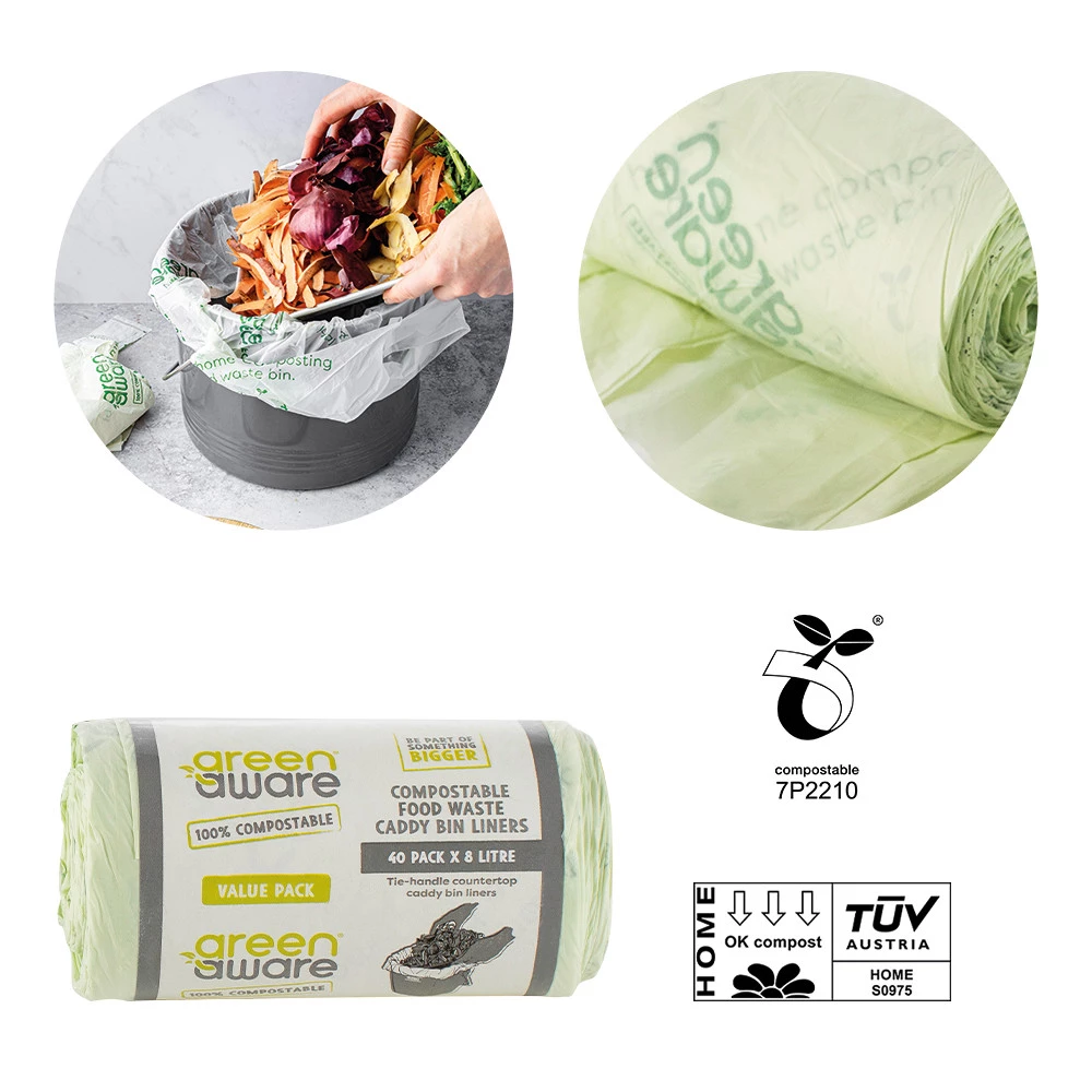 - GreenAware, Kompostowalne worki na odpady spożywcze, 8L, 40szt.