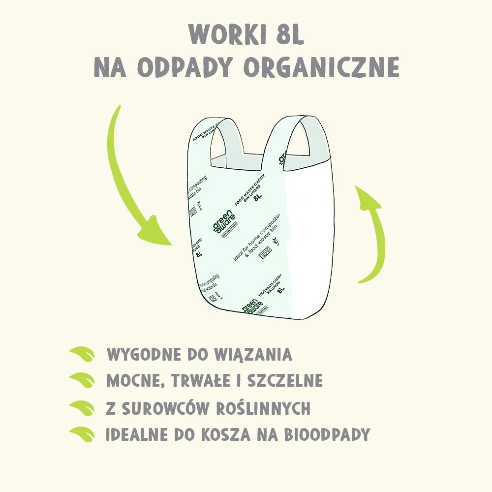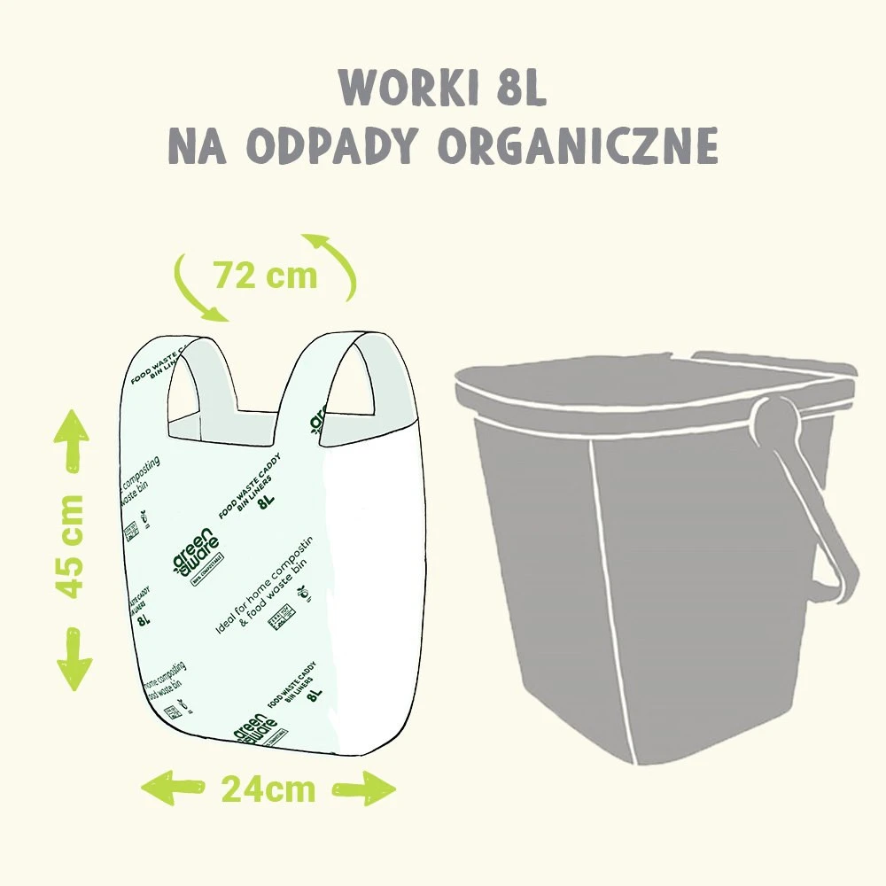 - GreenAware, Kompostowalne worki na odpady spożywcze, 8L, 40szt.