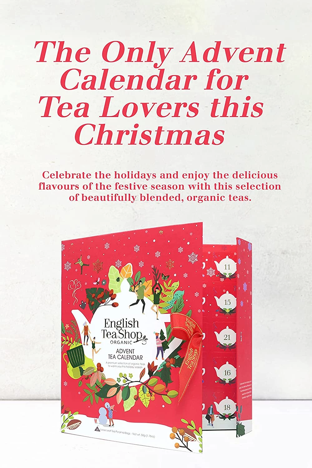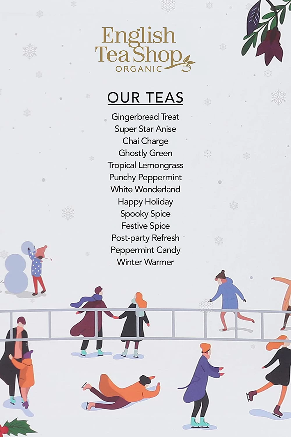 English Tea Shop to brytyjski producent herbat ekologicznych wytwarzanych z najwyższej jakości liści pozyskiwanych od rolników na całym świecie. Wszystkie herbaty powstają w fabryce na Sri Lance, w której do tej pory opracowano ponad 100 autorskich kompozycji smakowych. Marka pozostaje wierna idei zero waste, dlatego wszystkie jej produkty pakowane są w biodegradowalne pudełka podlegające w stu procentach recyklingowi. Ich kolorystyka różni się w zależności od smaku danej herbaty.