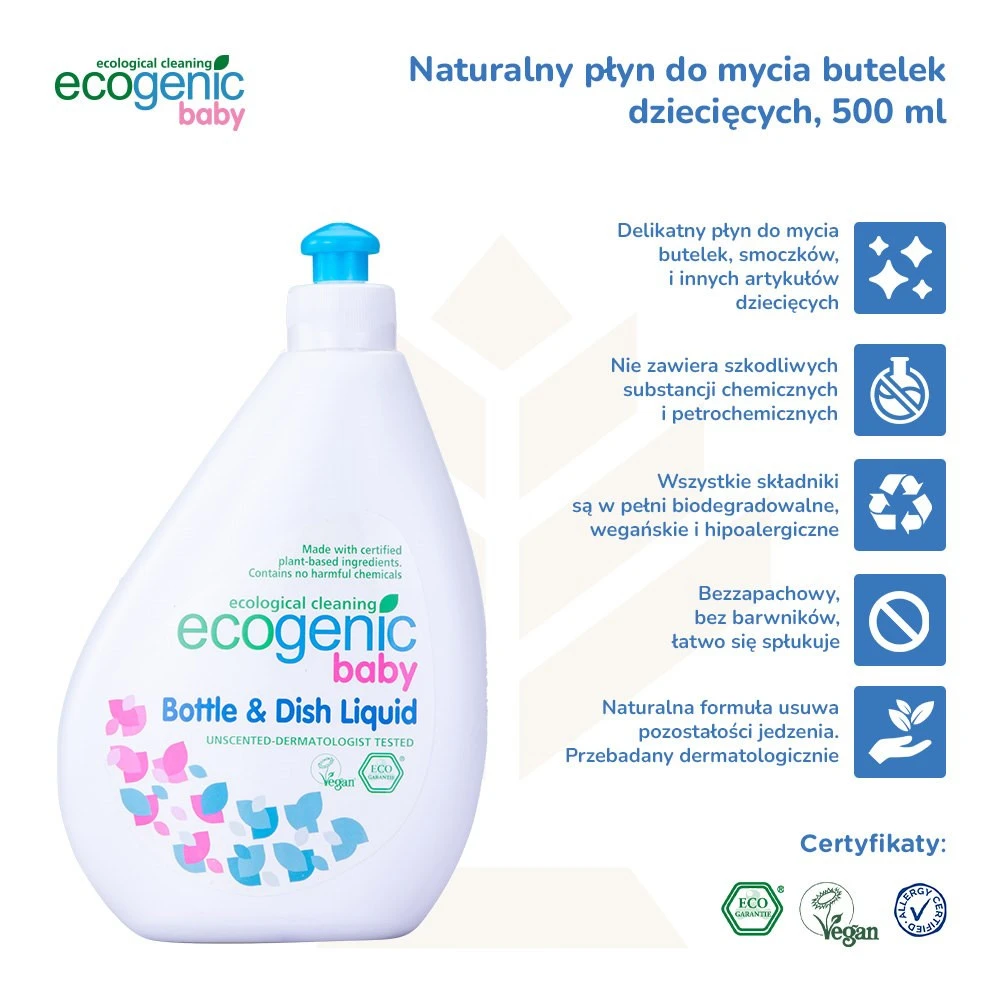 Ecogenic Baby, Płyn do mycia butelek, smoczków i zabawek, bezzapachowy, 500 ml