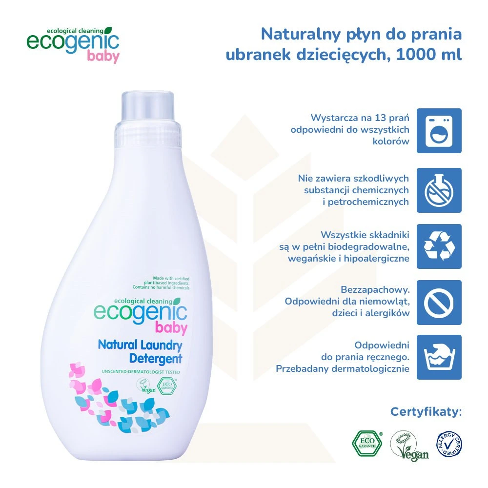 Ecogenic Baby, Hipoalergiczny płyn do prania ubranek dziecięcych, bezzapachowy, 1000 ml