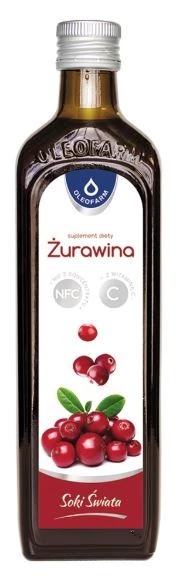 - Naturalny sok marki Oleofarm to 100% sok z żurawiny otrzymywany poprzez bezpośrednie wyciskanie owoców żurawiny.