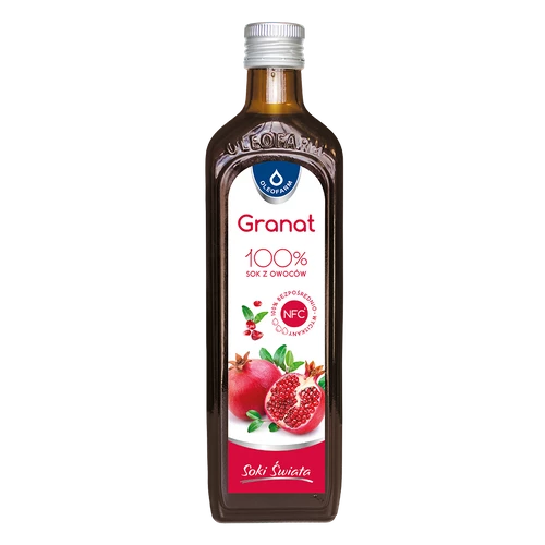 - Sok z granatu marki Oleofarm to naturalny produkt bezpośrednio wyciskany z owoców granatowca właściwego. Granat jest jedną z najstarszych roślin uprawianych w południowo-zachodniej Azji i ceniony jest za swoje właściwości prozdrowotne.