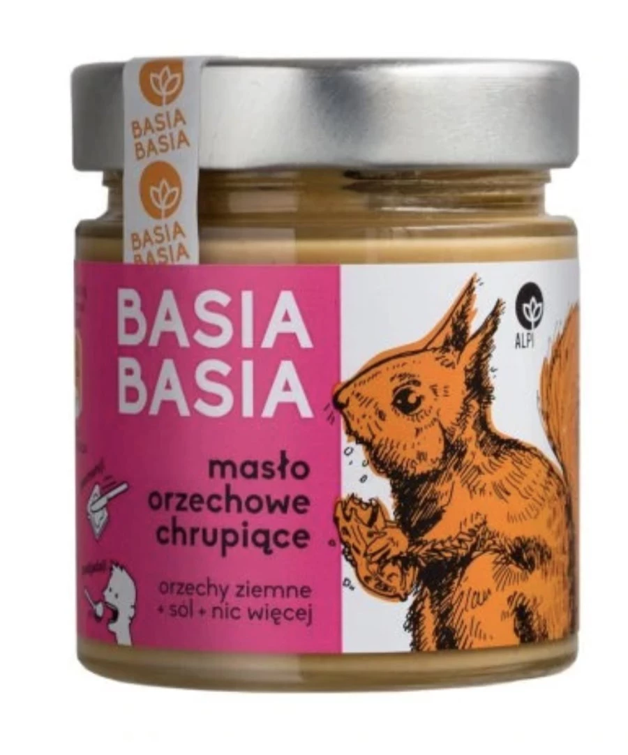 Masło orzechowe wyprodukowane przez Alpli z prażonych orzeszków ziemnych. Idealnie nadaje się do zjadania go prosto ze słoiczka, jako dodatek do kanapki, placuszków, owoców, ulubionych herbatników oraz owsianki na śniadanie. Orzeszki ziemne są bogatym źródłem niacyny – witamina B3, potasu, magnezu oraz wapnia. Orzechy arachidowe zawierają najwięcej białka ze wszystkich orzechów, dlatego też chętnie sięgają po nie kulturyści. Witamina B3 wpływa kojąco na stres oraz bezsenność.