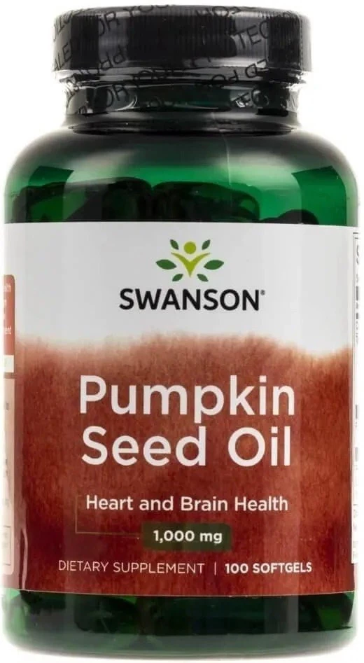 Produkt SWANSON Pumpkin seed oil 100mg, 100sqels. - Olej z pestek dyni Swanson to suplement diety. Nie może być stosowany jako substytut zróżnicowanej diety. Pamiętaj o zrównoważonym sposobie żywienia i zdrowym trybie życia.