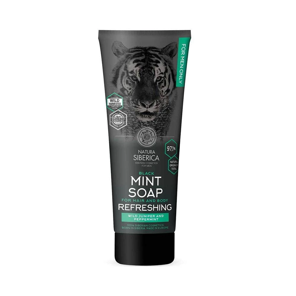 Naturalne, miętowe, odświeżające, czarne mydło do włosów i ciała Natura Siberica Men