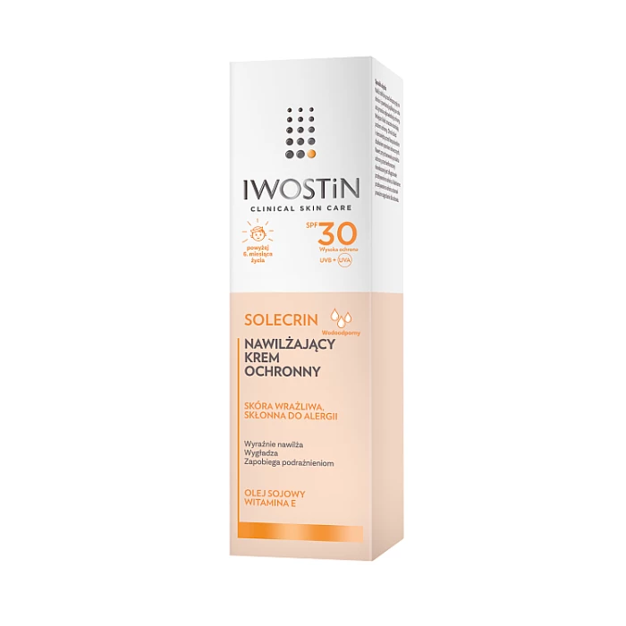 Iwostin Solecrin Nawilżający krem ochronny SPF 30 został stworzony specjalnie z myślą o skórze wrażliwej i skłonnej do alergii. Połączenie filtrów mineralnych i organicznych zapewnia wysoką ochronę Zawartość dodatkowego, innowacyjnego filtra immunologicznego (Antileukine 6) wzmacnia ochronę UV i poprawia równowagę hydrolipidową skóry Witamina E chroni przed działaniem wolnych rodników odpowiedzialnych za fotostarzenie się skóry Bardzo lekka formuła, szybko się wchłania Nie zostawia białych śladów Nie zatyka porów Odpowiedni jako baza pod makijaż do codziennego stosowania. Wysoka ochrona o szerokim spektrum UVB / UVA Połączenie filtrów mineralnych, organicznych oraz filtra immunologicznego Lekka konsystencja, nie obciąża skóry Testowany dermatologicznie