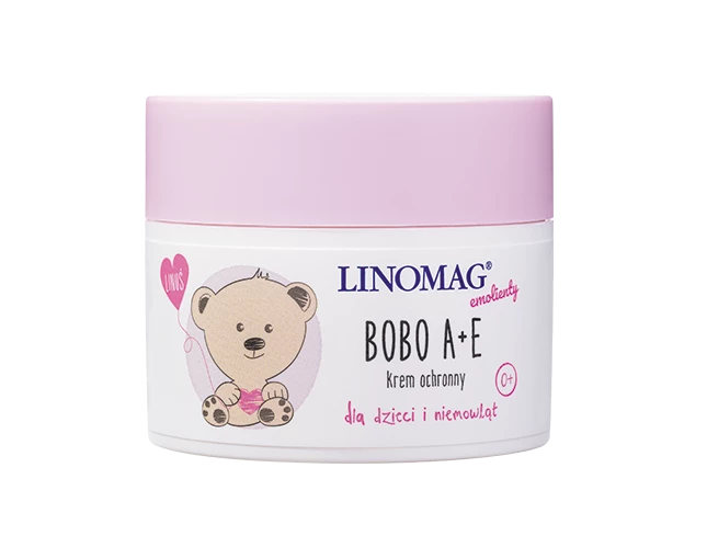 - LINOMAG® Bobo A+E polecany do codziennej pielęgnacji i ochrony skóry. Substancje aktywne stanowią połączenie oleju lnianego bogatego w NNKT, witamin A i E oraz lanoliny.